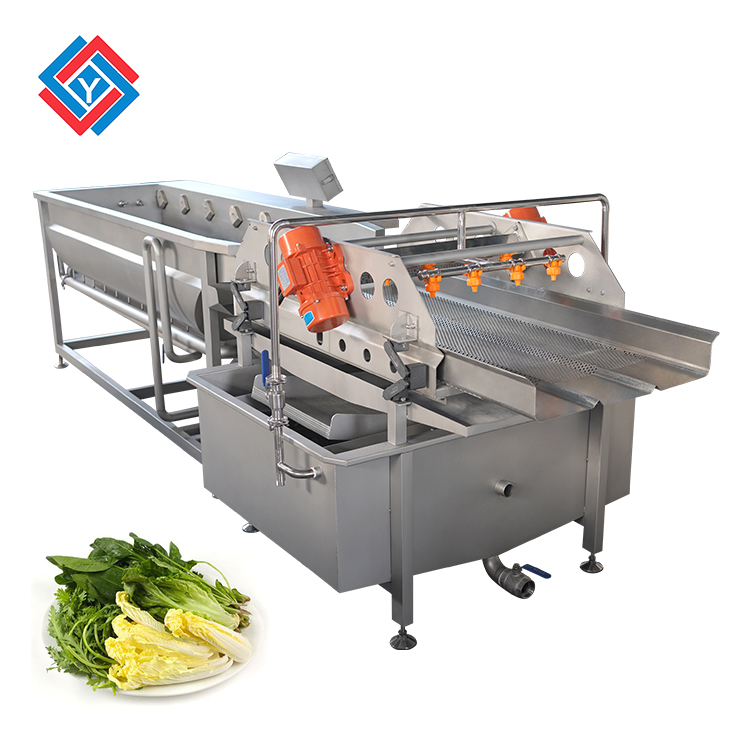 蔬菜清洗機采用的是水浴式的氣泡清洗,物料可以在清洗劑內(nèi)通過氣泡釋放過程中產(chǎn)生翻騰,讓物料在水中翻轉(zhuǎn)清洗來分離清洗表面的附著物,可以模擬人工清洗的操作,由于物料是在汽水混合物中翻騰進行運動,可以的避免清洗時產(chǎn)生的碰撞和損傷。