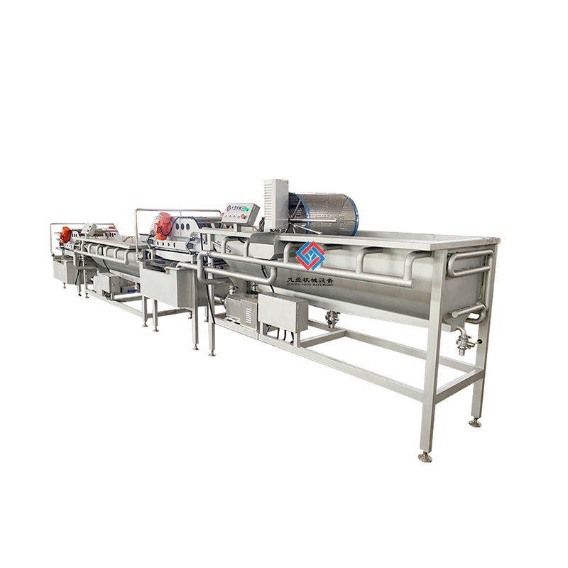 蔬菜清洗加工生產(chǎn)線/流水線配備了提升機(jī)、清洗機(jī)、振動(dòng)瀝水機(jī),可以將蔬菜經(jīng)過(guò)兩道清洗工序之后瀝水干凈,整條生產(chǎn)流水線設(shè)計(jì)合理,使用的過(guò)程中更加人性化,自動(dòng)化程度較高、清洗效果好、物料不容易送到損壞,是目前蔬菜清洗加工和中方廚房的理想設(shè)備。